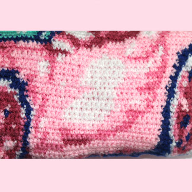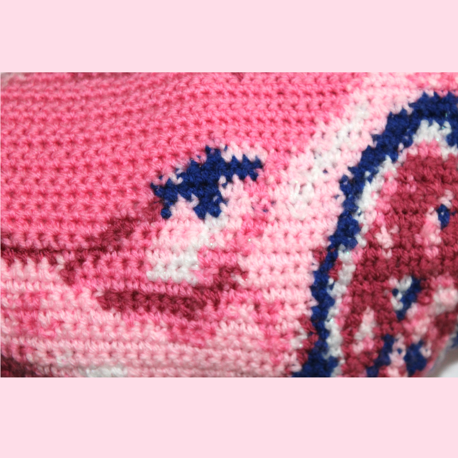 The yarns I used to complete this car are Stylecraft Special DK yarns in the colours: raspberry, fondant, candyfloss, royal, aspen and lavender. For the white parts I used James C Brett Twinkle yarn in the colour white. I used a 3.5mm hook to complete my cushion. Feel free to use any hook and yarn size you like!