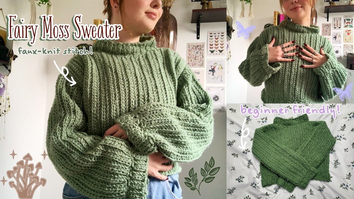 What is how to crochet a fairy moss sweater | crochet knit stitch | beginner friendly | thisfairymade?