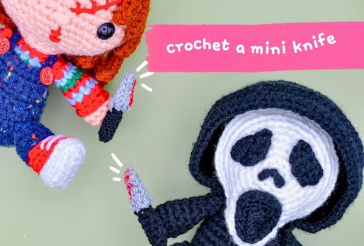 just a quick video tutorial on how to crochet a little knife for amigurumi I make these for my Ghostface and Chucky plushies, you can find my patterns for them in the links below!