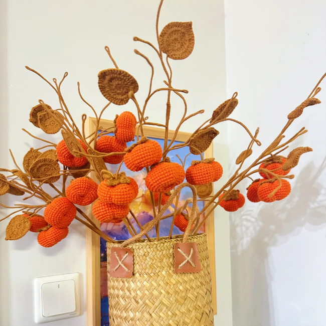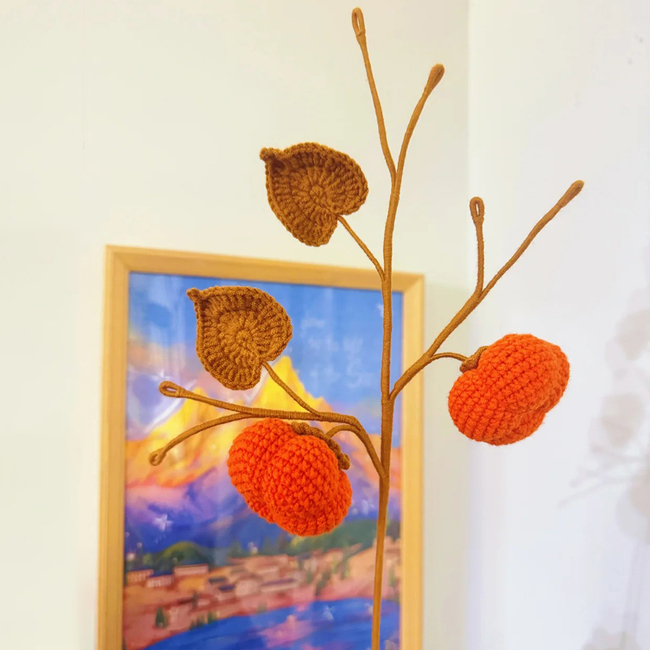 The How to Crochet Persimmon Branch pattern makes a Home Decor. It is a Beginner Crochet pattern.