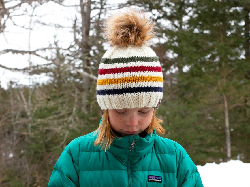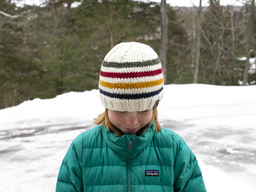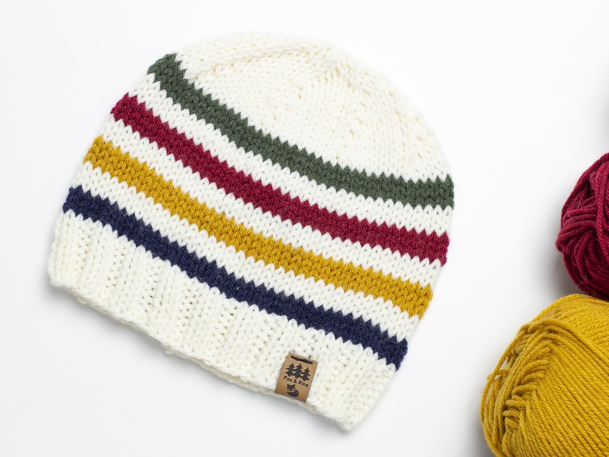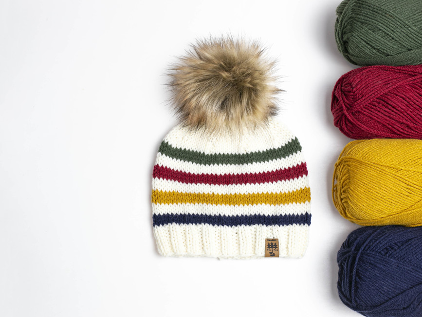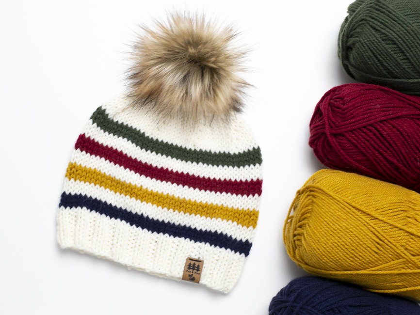 Our Hudson Bay stripes medium weight hat knitting pattern is perfect for making handmade gifts for your loved ones, young and old.