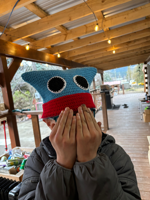 Are you a gamer? Are you obsessed with poppy playtime? This is the hat for you. It's an easy pattern to follow. It fits a youth size. It's a fun pattern to complete and can be completed quickly. While I used the colours for huggy wuggy you can easily switch out the blue for pink and make kissy.