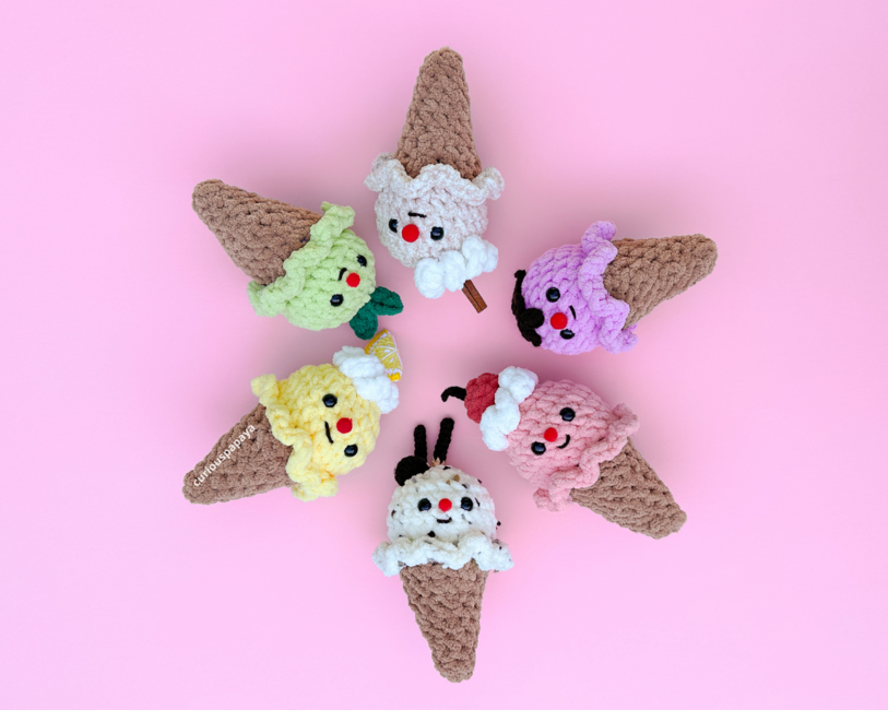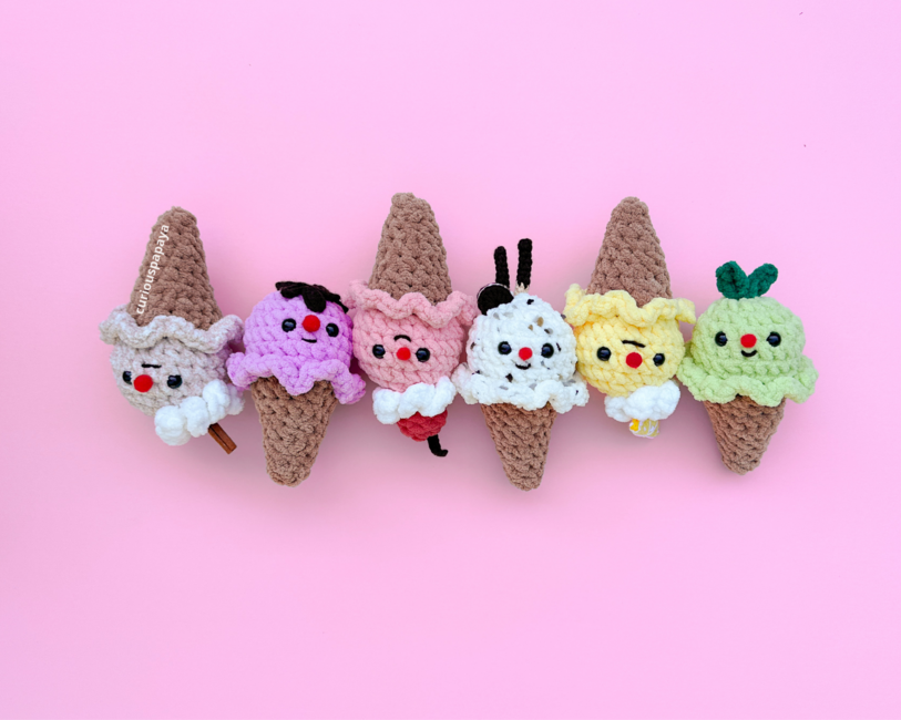 Introducing my "Create Your Own Ice Cream 6-in-1" pattern! I designed this pattern with my upcoming craft market in mind. I wanted something quick and eye-catching, and I thought, "who doesn't like ice cream?"