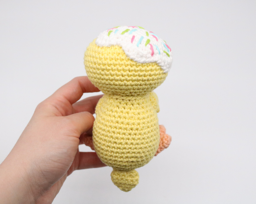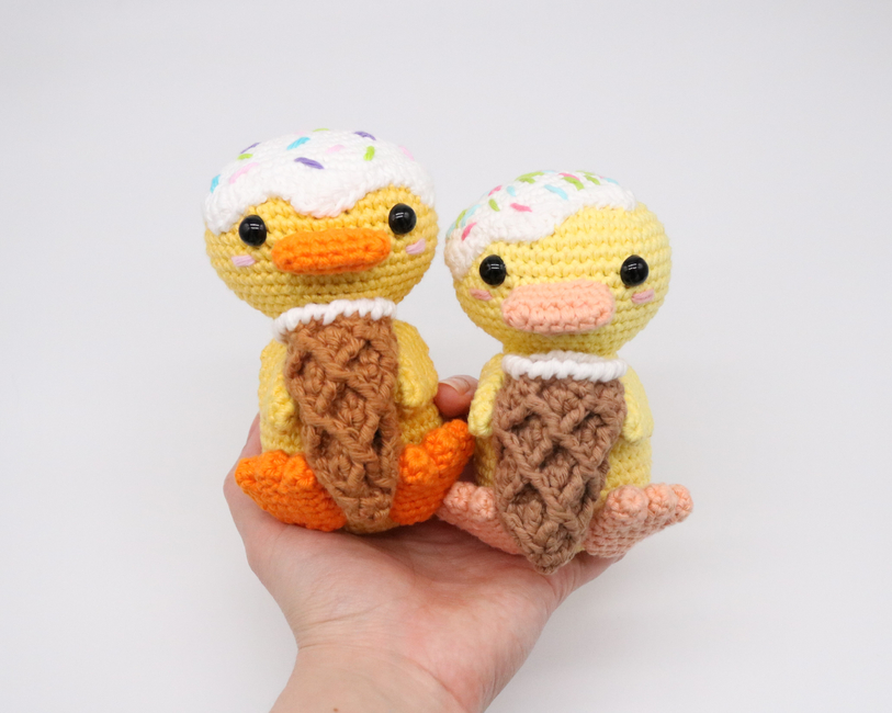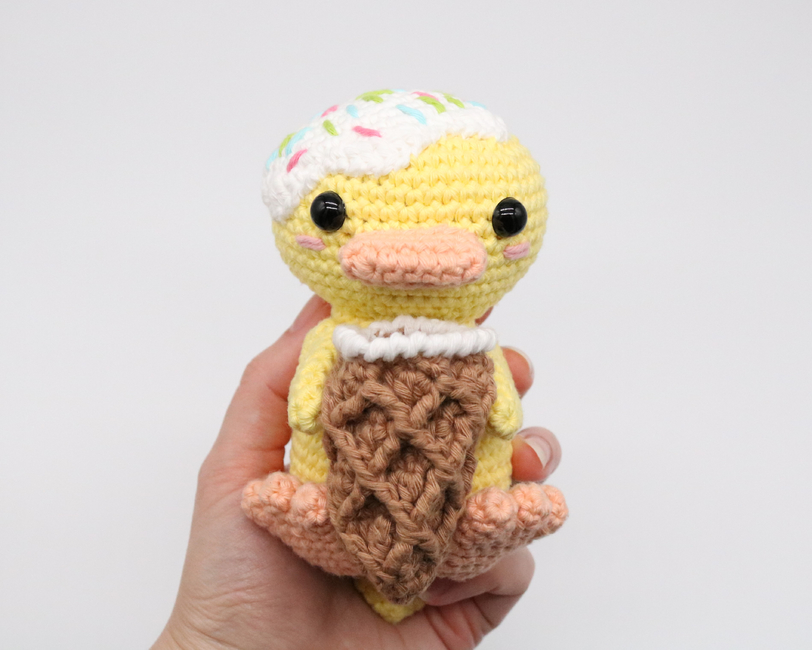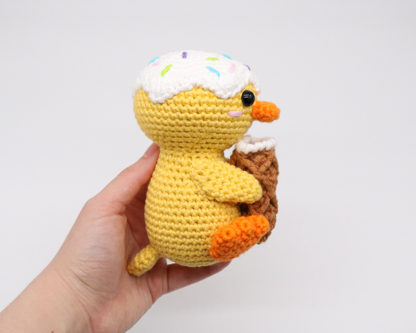 This pattern written in English. Sprinkles is a slightly more challenging beginner level pattern, while the Ice Cream Add-on is an intermediate level pattern. Some pieces of this pattern, such as the feet and the beak, might be harder for a beginner who is just starting off to complete, however, I have provided detailed instructions and pictures to help guide you in making these pieces.