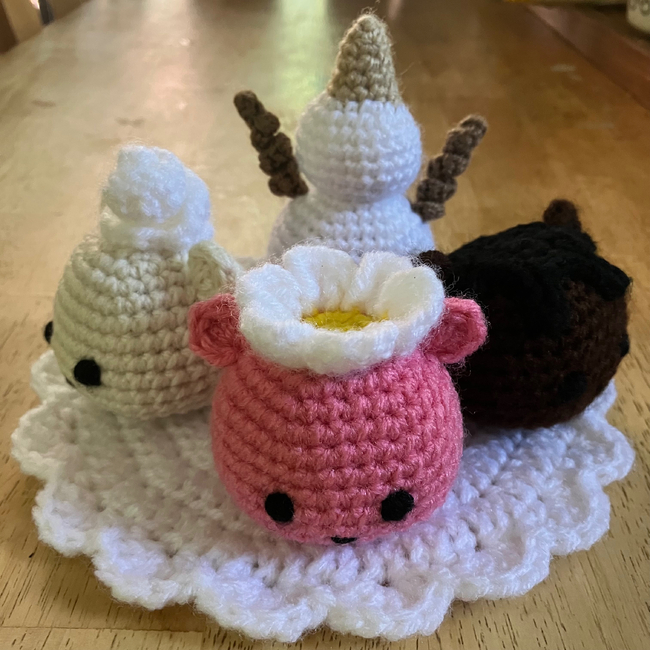 The Ice Cream Dreams pattern makes a Amigurumi. It is a Intermediate Crochet pattern.