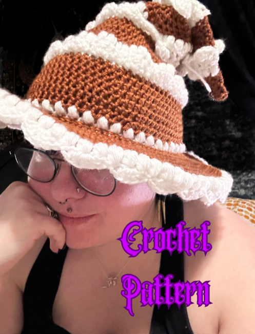 Nyx Novturnal designed the Icing On Top witch hat pattern. Find more of their patterns on their Ribblr shop page.