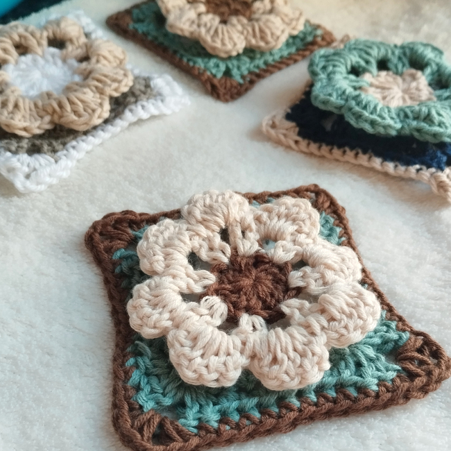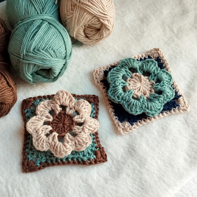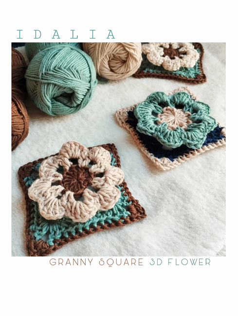 This pattern brings us a granny square with a 3D effect where a pretty flower stands out from the typical granny square, giving it a special touch to add to any of your projects.