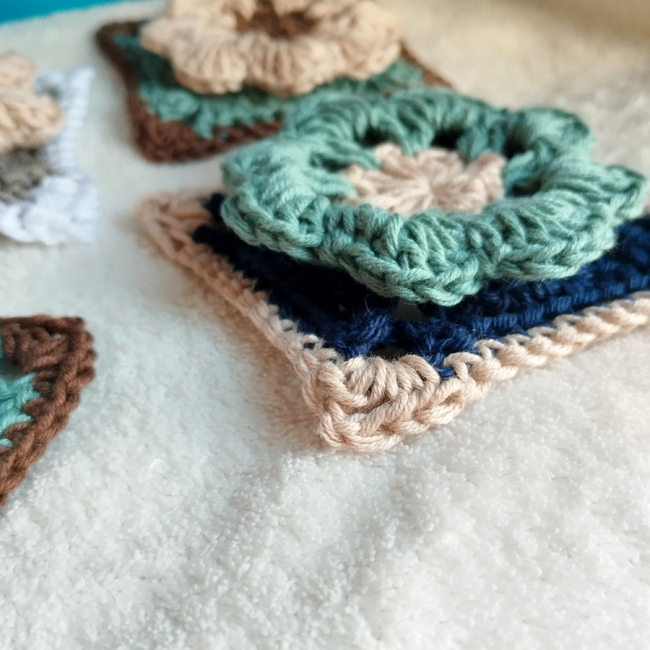 Granny Square Size: The final size may vary depending on the yarn and crochet hook used. The ones in the photographs were worked with a 3.5mm hook and measure about 10cm x 10cm.