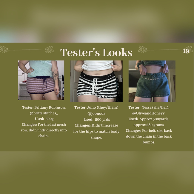 You are not allowed to sell, redistribute, create a tutorial for, and/or share any part of the whole pattern. You are allowed to sell the physical shorts as long as you credit me as the designer. If you make the shorts, please feel free to tag me @softlyknotted so that I can see your wonderful creations!