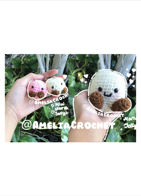 These are two adorable crochet pieces that take about 25-45 minutes to make for the keychains, and 1-2 hours to make the larger plush!