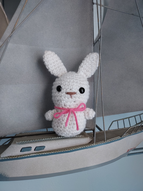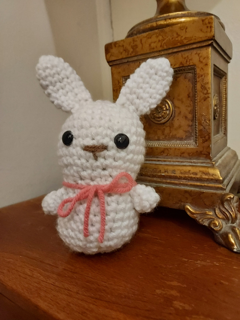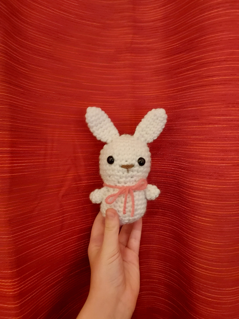 A little bunny amigurumi (my first pattern!) This pattern includes sewing pieces together embroidering a face, and magic rings.