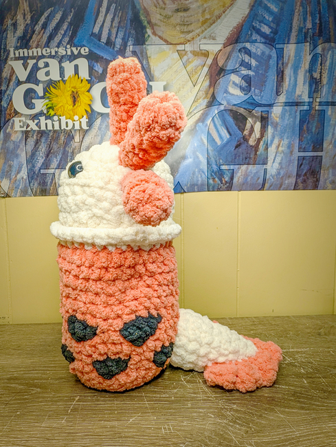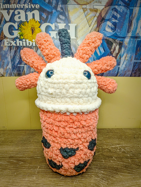 This pattern is a playful combination of an axolotl and a boba tea. The pattern for this jumbo plush is intermediate as it involves color changes, Circle joins and a good bit of sewing. That being said, this pattern may not be for everyone.