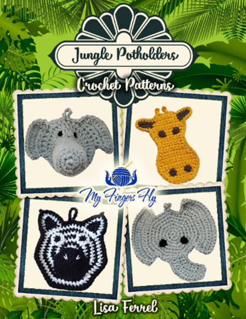 Let your kitchen take a walk on the wild side with these jungle-themed crochet patterns. Bundle includes instructions for elephant potholder, elephant panhandler, giraffe potholder, and zebra potholder. Each potholder works up quickly in double strand of cotton worsted weight yarn and J hook.