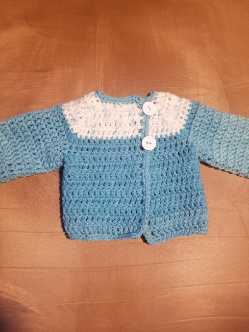 This is the smaller size of my Kelly's sweater pattern. This will fit a newborn up to 3 months.