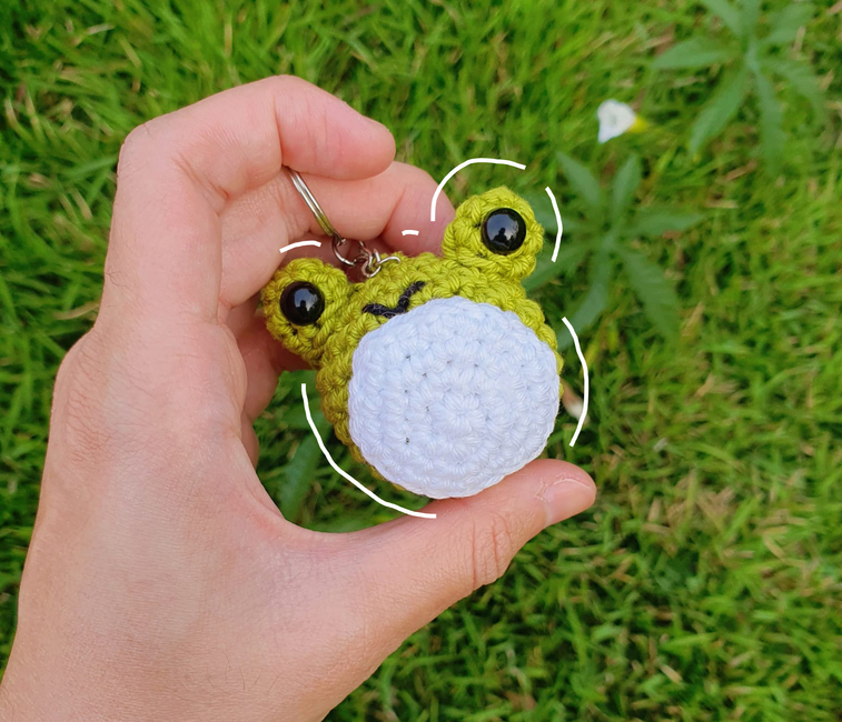 This is a cute frog keychain pattern for beginners in amigurumi, but know about the simple crochet stitches.