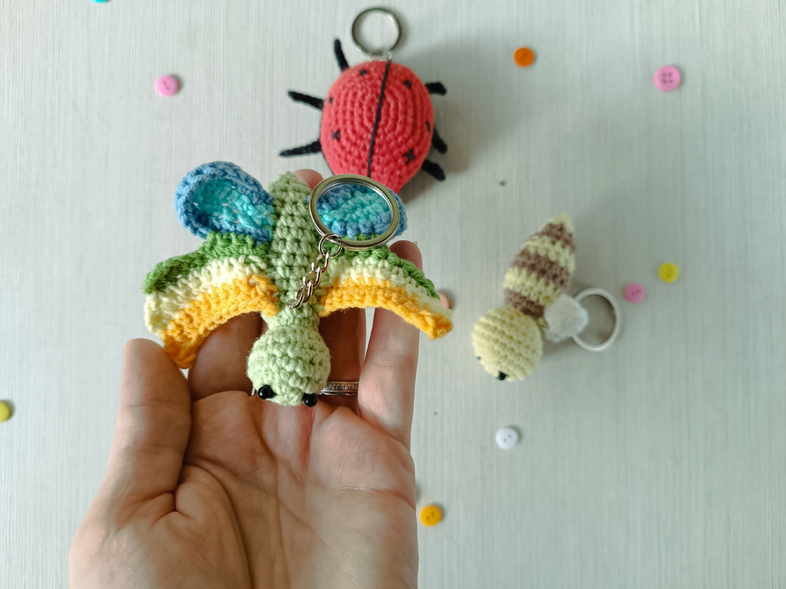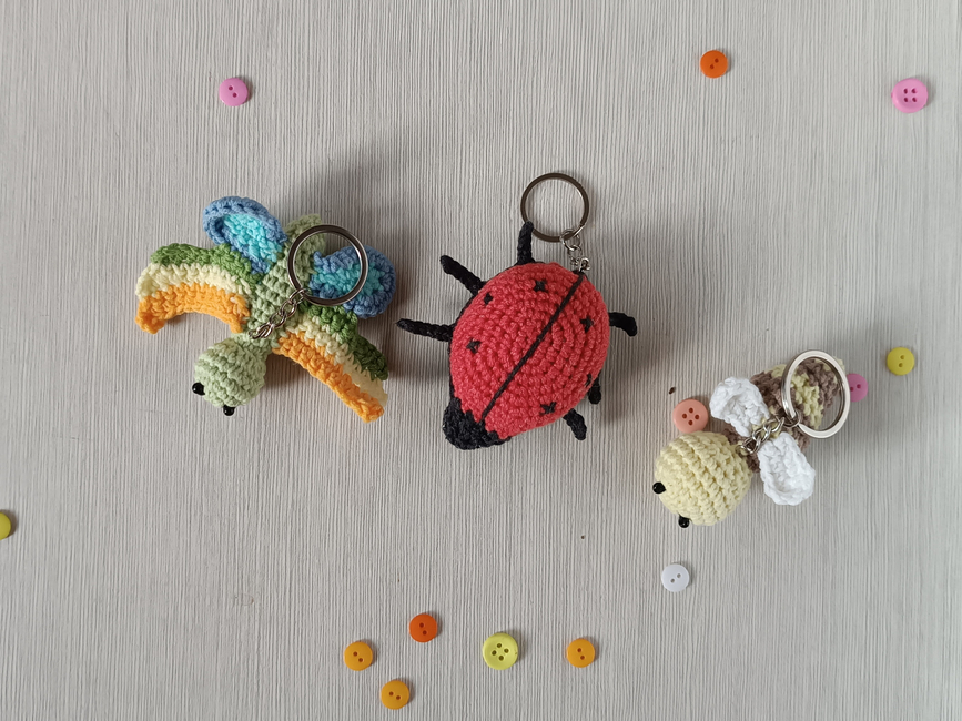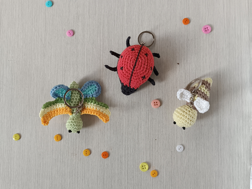 You can crochet little Bee, Butterfly and Ladybug as keychains or play set for kids