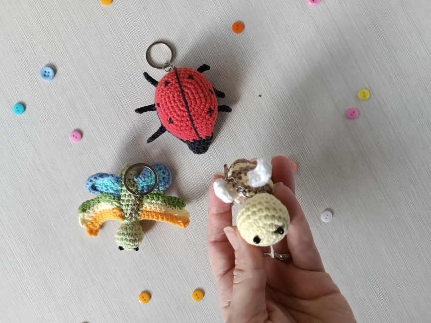 Keychains Bee, Butterfly and Ladybug