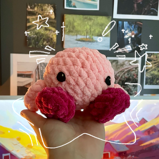 This pattern is the perfect size for the Jumbo (7) Yarn! This simple Kirby works up fast and easy. If you want to go smaller, choose smaller sizes of yarn!