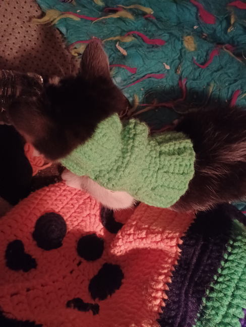 This bundle includes a harness, a vest, and a little pumpkin bed for your kitten!