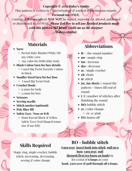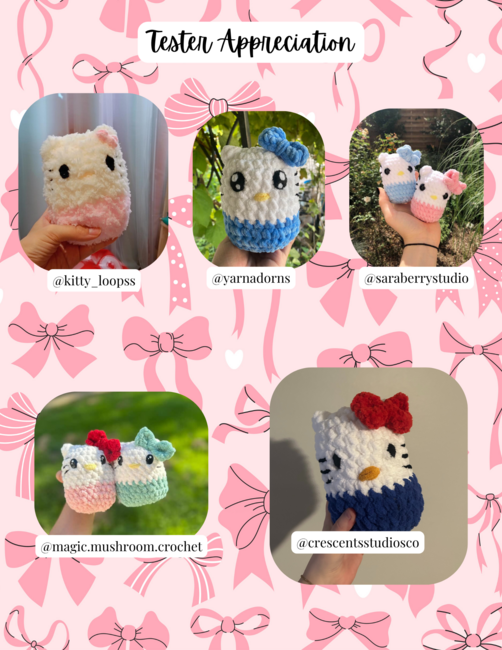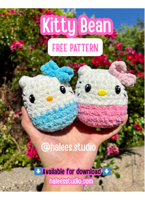Kitty Beans is a Beginner Crochet pattern designed by Halee's Studio for making an Amigurumi. Calling all Hello Kitty fans and Squishmallow lovers! This adorable crochet pattern is your new market-day secret weapon. Whip up these irresistible plushies in just 30 minutesstuffing and bow included. Perfect for beginners!!Worked in continuous ...