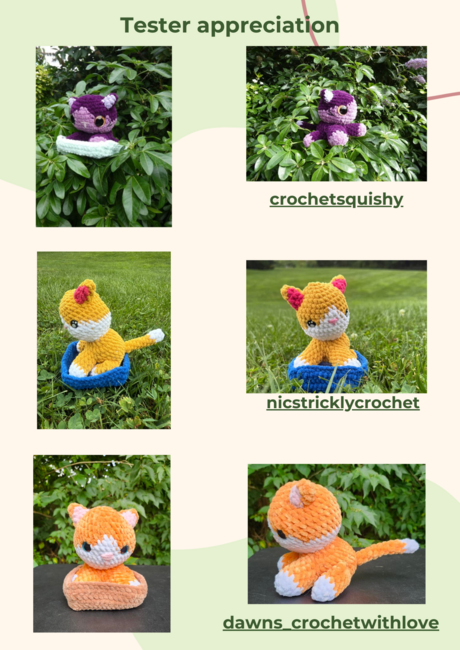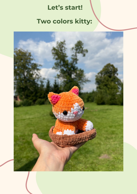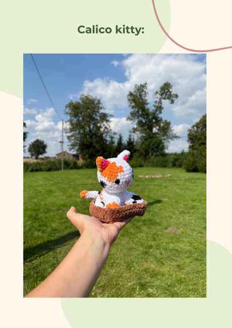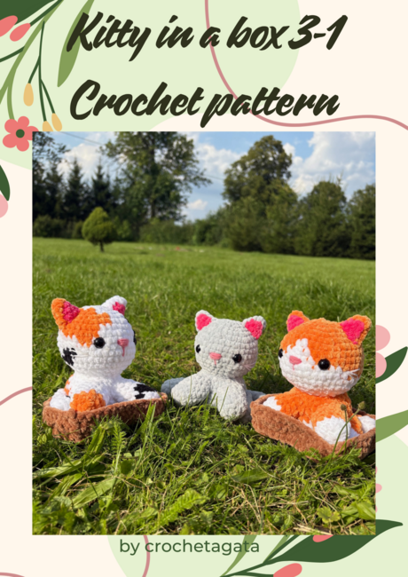 Welcome to my kitty in a box crochet pattern! Looking for an easy crochet cat pattern? You've come to the right place! With this pattern, you can make 3 different kinds of cats: calico, two-colored, and solid-colored! Plus, there's also a pattern for a little box! Play with the fur colors and create your very own cat.