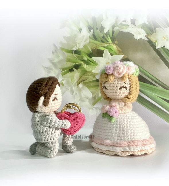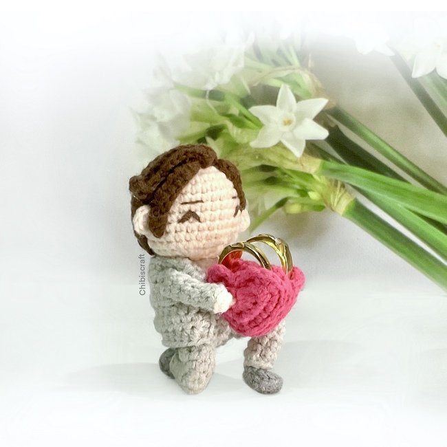 A kneeling groom that can hold 2 wedding rings. He can also "stand" by himself without any other support. This amigurumi will be a unique, original toy for you or a special gift for your loved one. Its perfect as a decoration or gift for wedding or wedding anniversary, or Valentines day.