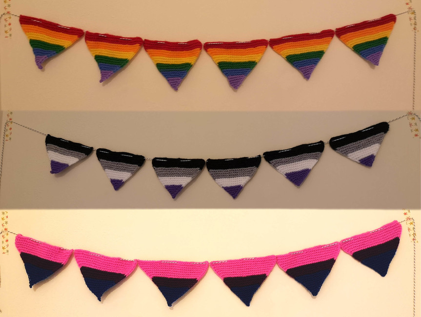 A simple pattern for knitted bunting with some pride flag variation instructions
