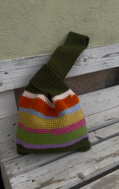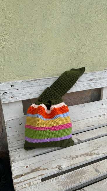 I have created this knot bag made with 100gr of colorful yarn.