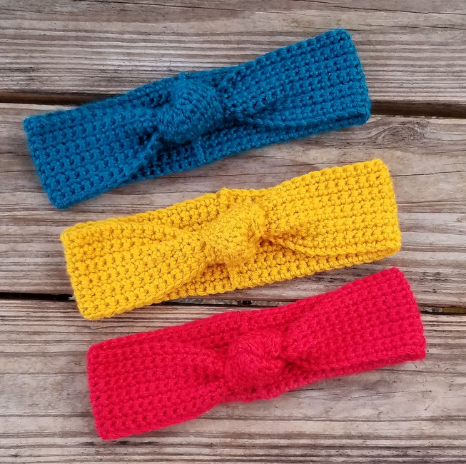 This knotted headband crochet pattern is easy to read and works up quickly. It is a great use for scrap yarn.