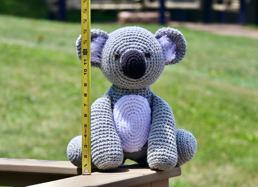 Kirra the Koala measures approximately 14" tall (sitting) x 10" wide.