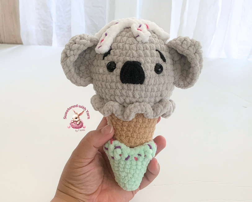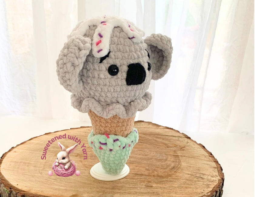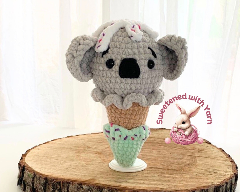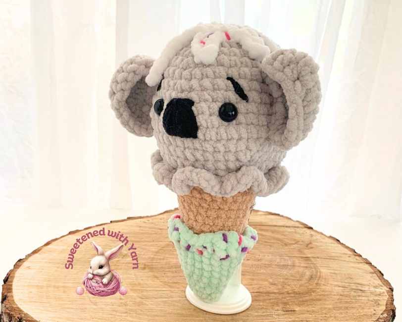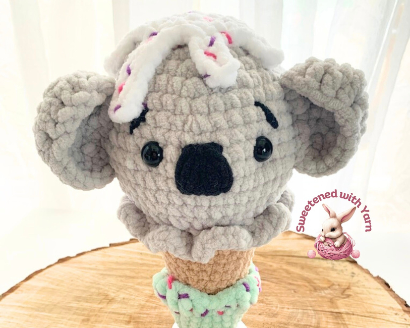 This adorable koala-shaped ice cream is a truly delightful treat. The cones are available in a variety of animals ... cat, frog, bunny, cow, duck, pig, bear, tiger (and more already in the works). Each crochet is a quick, whimsical journey, perfect for market makes or a relaxing project at home.