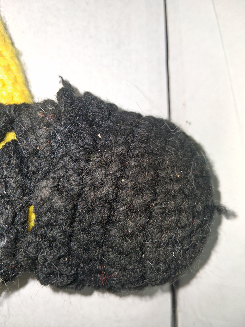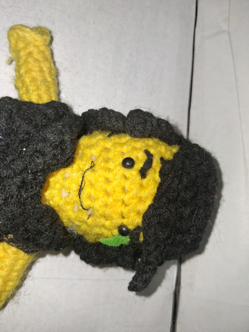 To make koda you will need: red heart black, red heart yellow, black felt, 8 mm. Tools required: 3.75mm.
