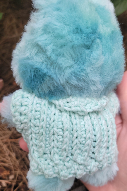 This is a cute little crochet cardigan pattern for your Labubu or Lafufu! It is all crochet, but made to look knit! This pattern includes options to make a cardigan with a ribbed border or simple border!
