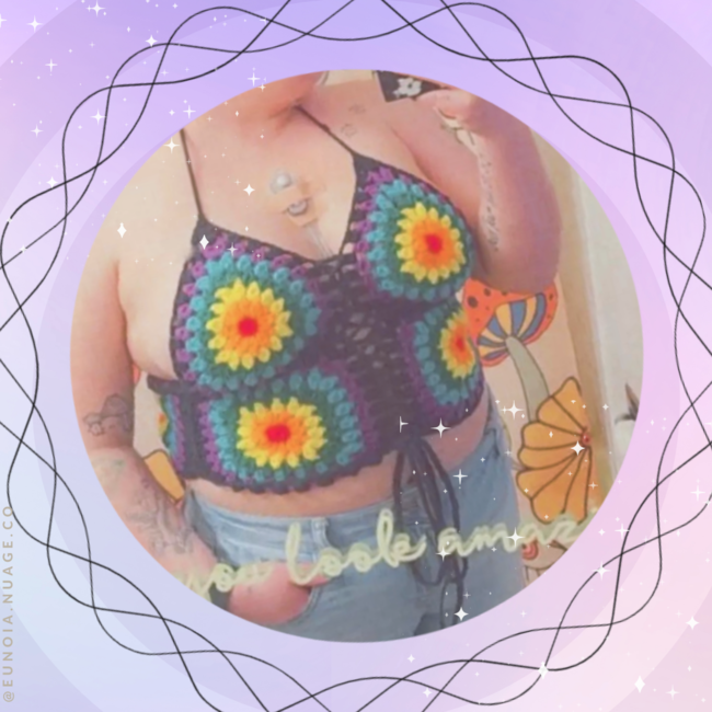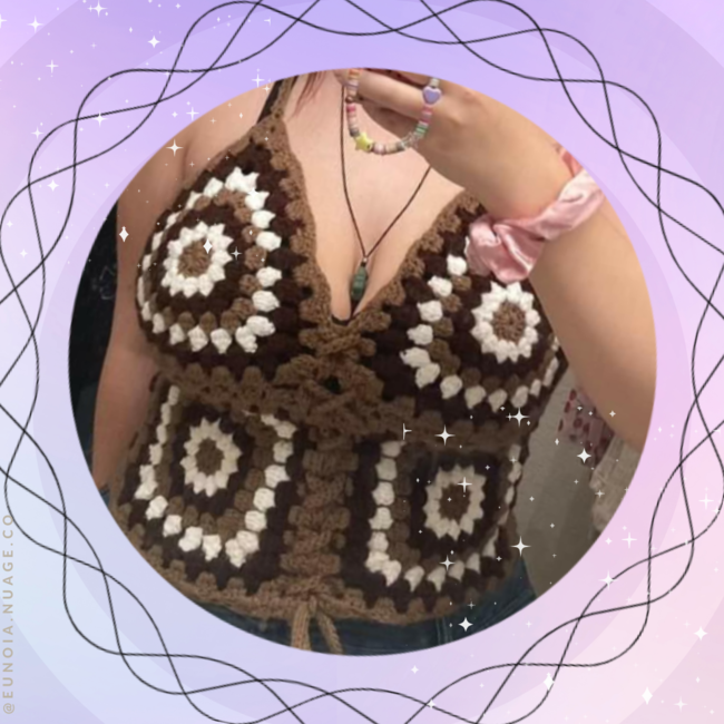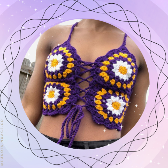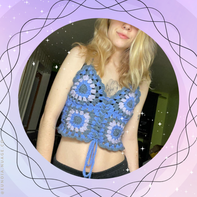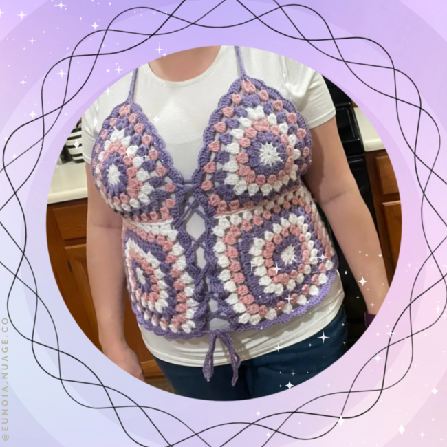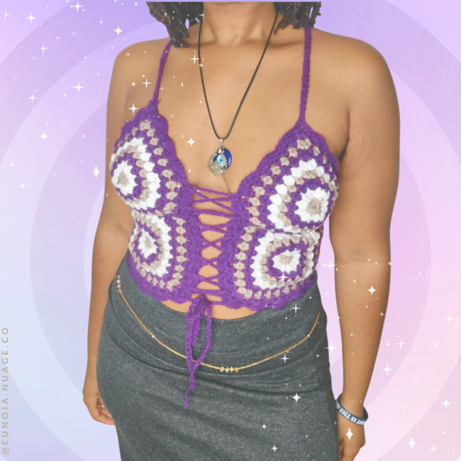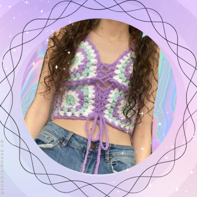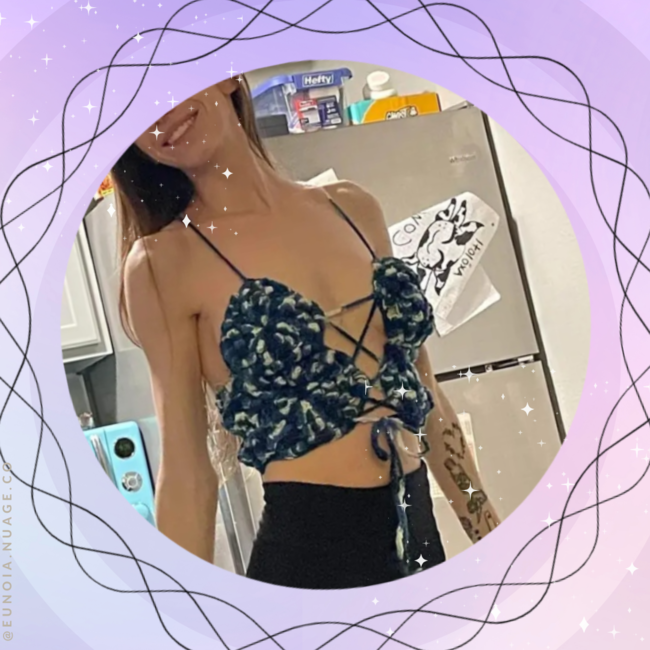 eunoianuageco designed the Lacey Delilah Top pattern. Find more of their patterns on their Ribblr shop page.