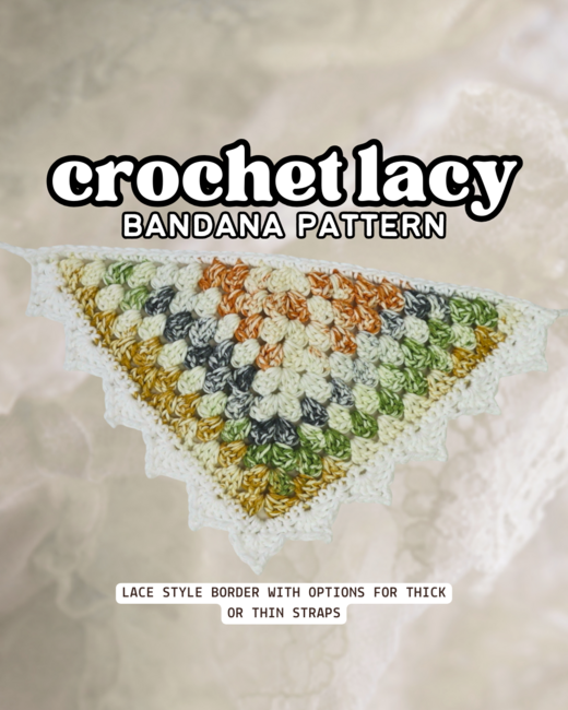 This is the written version of my Lacy Bandana pattern, with both a no sew and low sew version! This is a great stash buster and a real quick make!