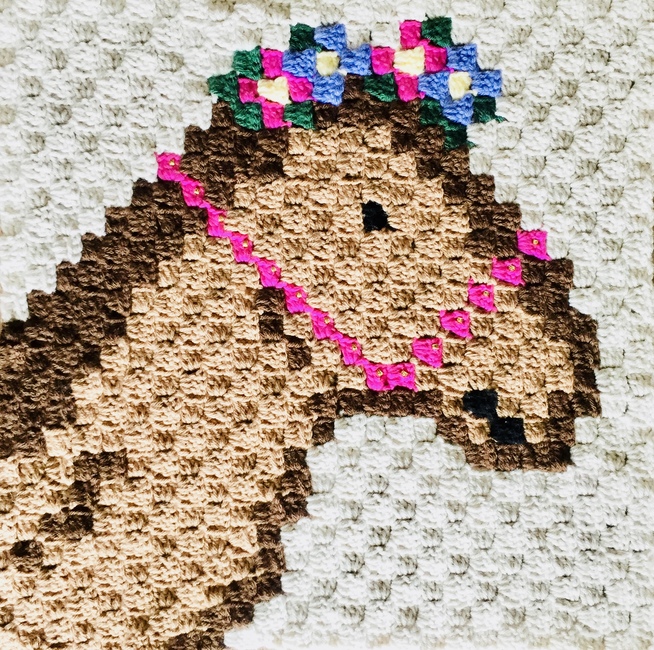 This C2C square can be used on its own to make a pillow case, tote bag, baby lovey, small pet blanket, wall hanging; or it can be mixed and matched with other square patterns I will be sharing with you so you join your farm animal squares together to make them into a blanket, throw or large wall hanging (as pictured here to the left).