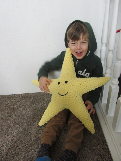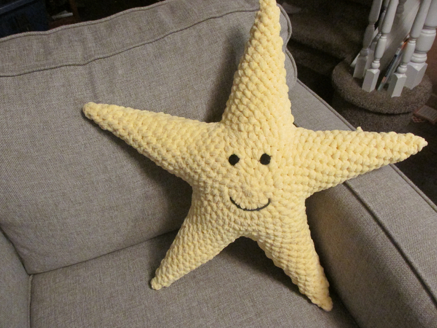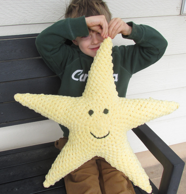 This pattern makes a giant cuddly star! Super fun and very soft.
