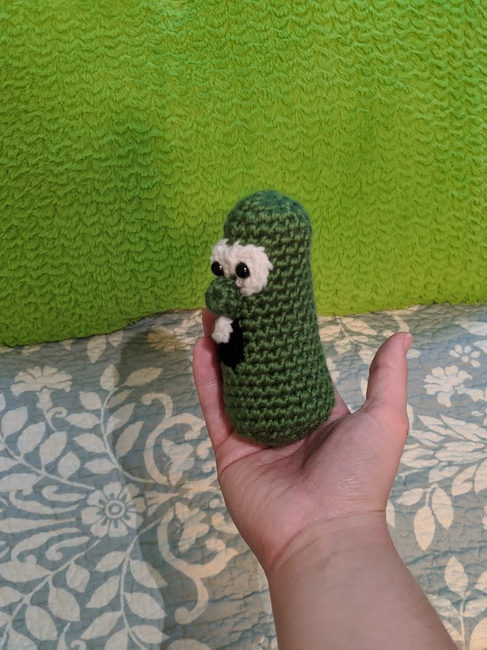The Larry the Cucumber Veggie Tales pattern makes a Amigurumi. It is a Beginner Crochet pattern.