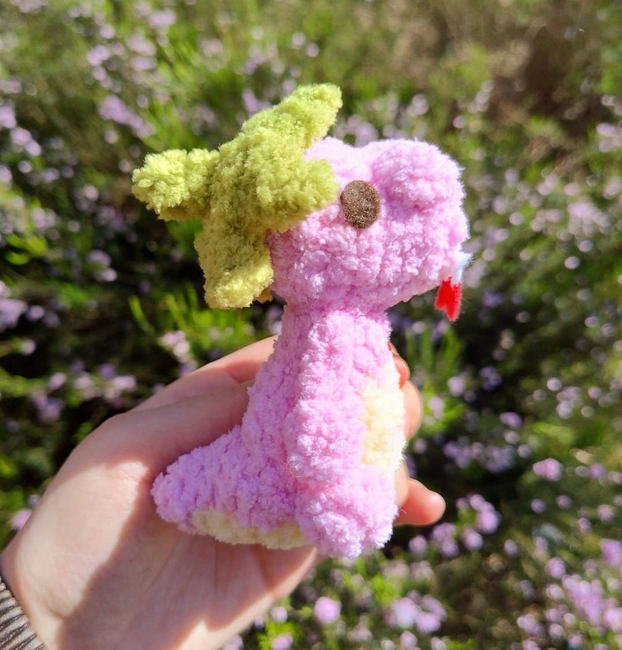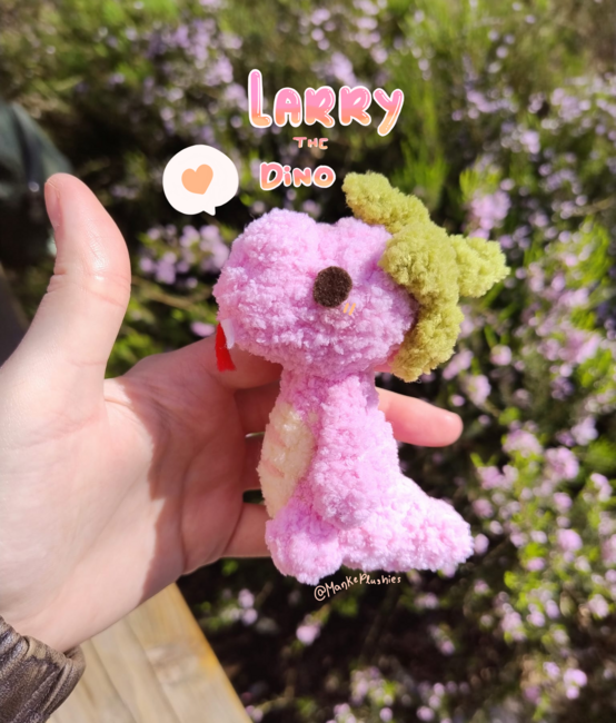 Manke Plushies designed the Larry the Dino pattern. Find more of their patterns on their Ribblr shop page.