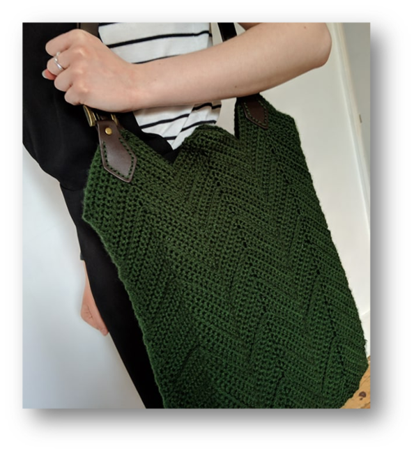 HookedByHandmade designed the Laurel Bag pattern. Find more of their patterns on their Ribblr shop page.