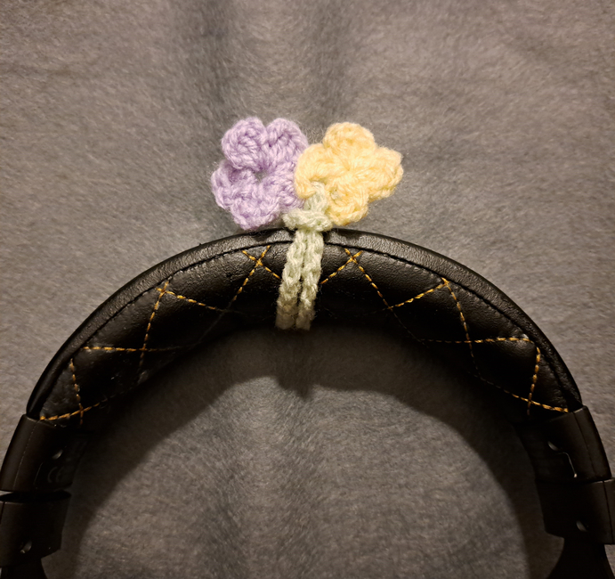 Add a cute lil' touch to your headphones with this bundle for a leaf/sprout and flower headphone accessories. The patterns are really quick to make and perfect for using up scrap yarn or for an easy gift for friends and gaming enthusiasts.