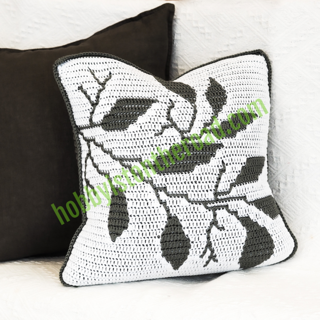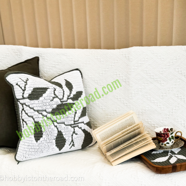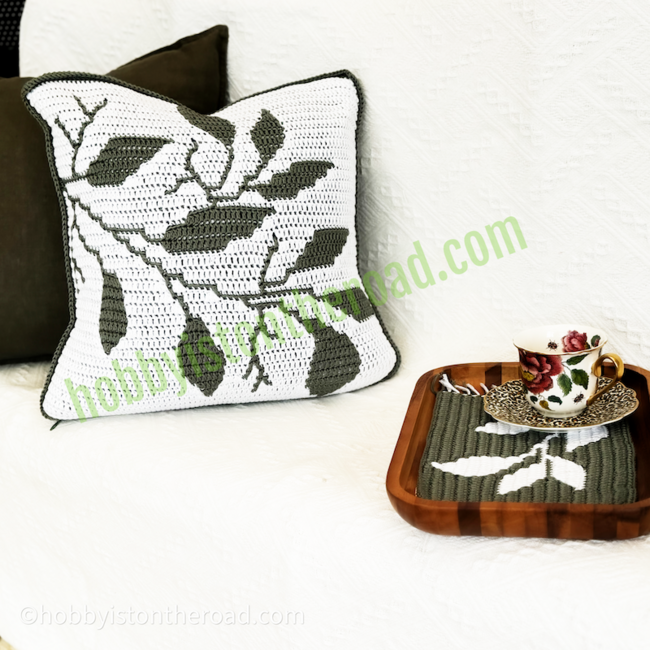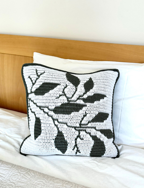 Crochet your own Leafy Hedges Cushion cover (Version2), using the Mosaic Overlay technique.