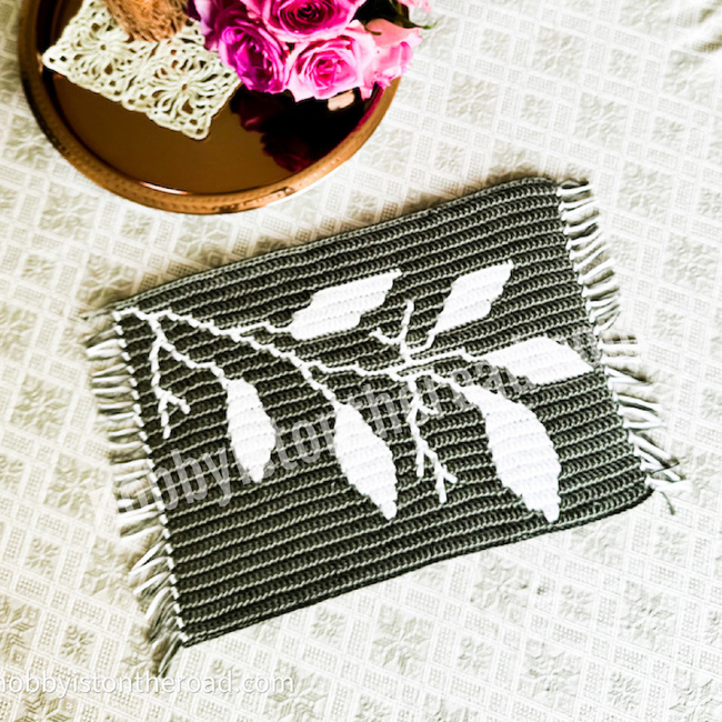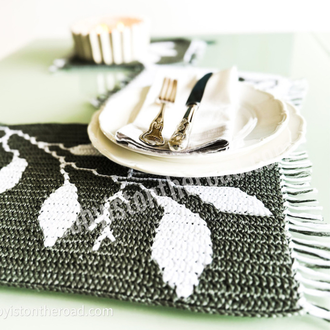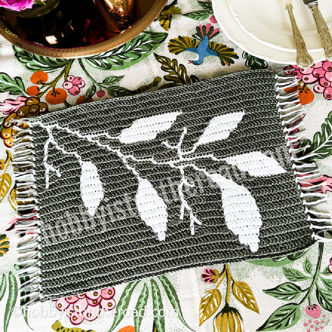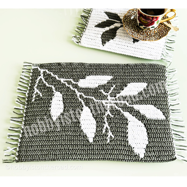 Crochet your own Leafy Hedges Placemats, using the Mosaic Overlay technique.