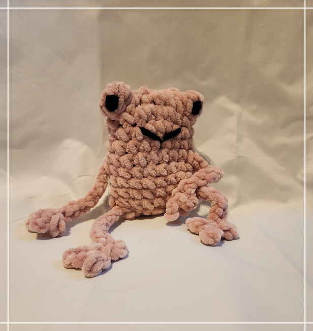 Michelles Knotty Creations designed the Leggy Frog pattern. Find more of their patterns on their Ribblr shop page.