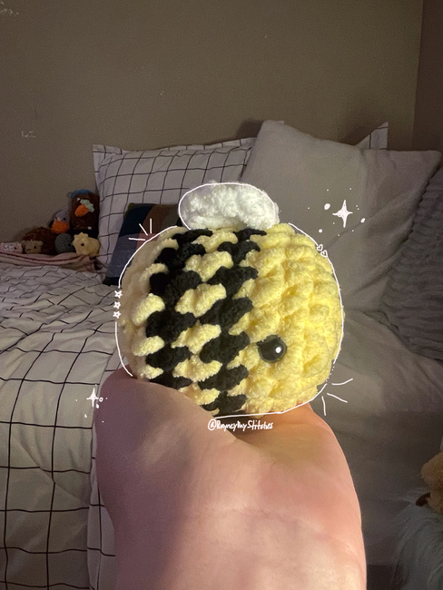 the perfect bee-ginner pattern! this pattern makes a bee that fits perfectly in the palm of your hand!(that is, if you use a 7mm hook)