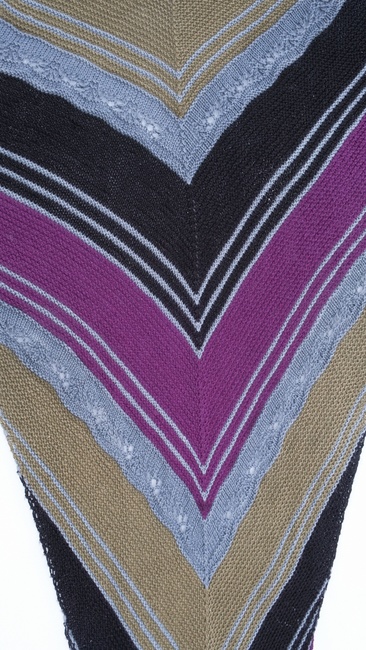 To make Lempi Shawl 2433 you will need: ©Knit One Crochet too YarnCrock-O-Dye (3.53 oz/ 100 gr) 380 m/ 416 yds),65% Superwash Wool, 20% nylon, 15% silkMC1: #1928 Granite x 1 skein, ©Knit One Crochet too YarnCrock-O-Dye (3.53 oz/ 100 gr) 380 m/ 416 yds),65% Superwash Wool, 20% nylon, 15% silkCC1: #1583 Lichen x 1 Skein, ©Knit One Crochet too YarnCrock-O-Dye (3.53 oz/ 100 gr) 380 m/ 416 yds),65% Superwash Wool, 20% nylon, 15% silkCC2: #1779 Deep Plum x 1 Skein, ©Knit One Crochet too YarnCrock-O-Dye (3.53 oz/ 100 gr) 380 m/ 416 yds),65% Superwash Wool, 20% nylon, 15% silkCC3: #1999 Ebony x 1 Skein, Tapestry needle, Removable stitch markers, Tape Measurer or ruler. Tools required: Size 7 (4.5 mm) x 40@Q circular needle or longer.