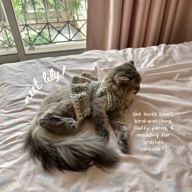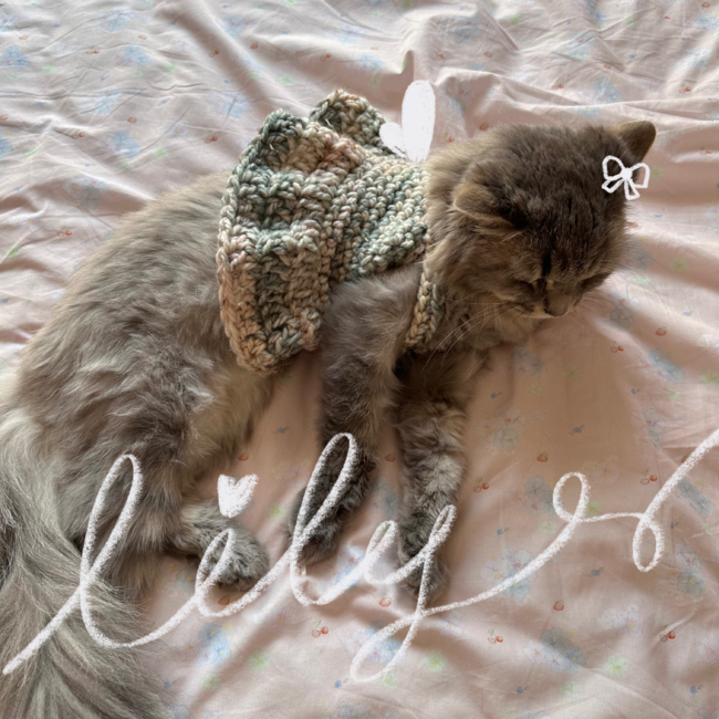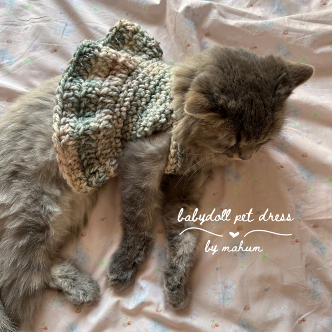 since this pattern is made-to-measure, you can use ANY yarn/hook and customise the size to your liking! i recommend medium or dk weight yarn with a 4-5 mm hook OR if you want a chunky pet dress like mine - i used circulo verbena yarn (chunky weight, acrylic/wool blend) with a 9 mm hook.
