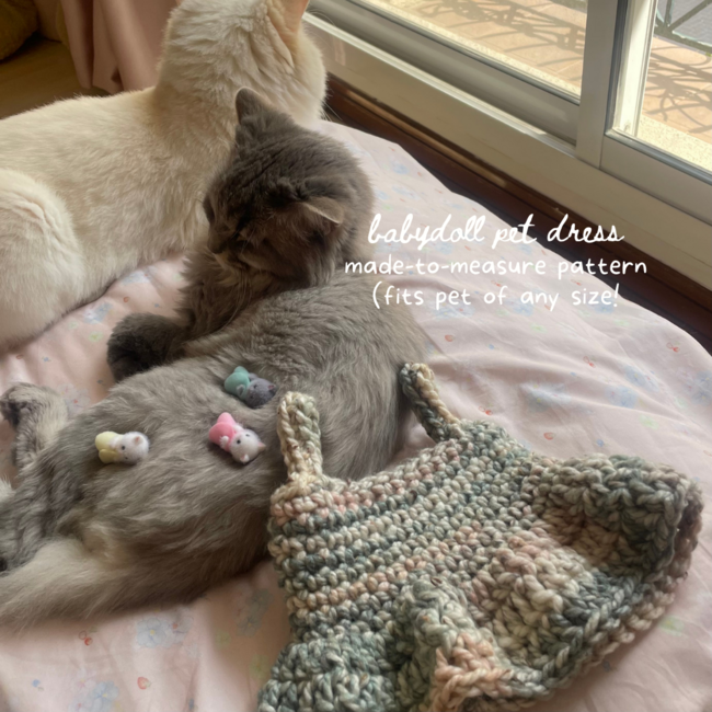the cutest babydoll dress for your cat or dog! this pattern is easily customizable so you can make this dress ANY size to fit your pet comfortably. this is the mini pet-friendly version of my lily babydoll top which you can make to match with your pet :)
