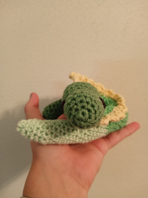 This is an intermediate pattern, which is, for most of the body, worked in short rounds, which are used to curve the body. If you haven't learned about them before, there are some good videos online about them, and then try making this dragon! It is a fun pattern to make!