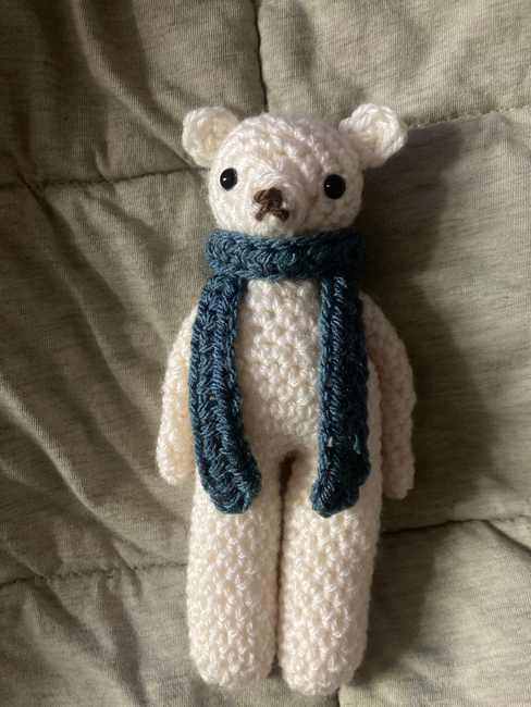Little cute bear with a scarf. This pattern does require some sewing however it is still fairly simple any questions don't hesitate to message me <3